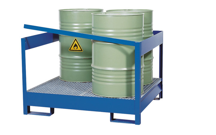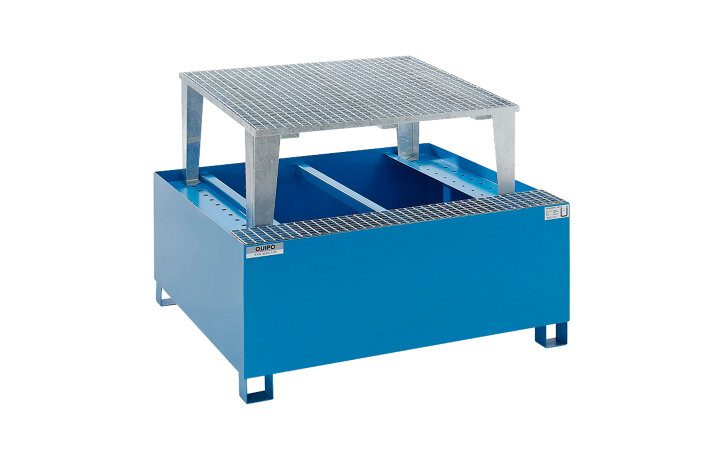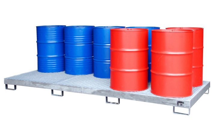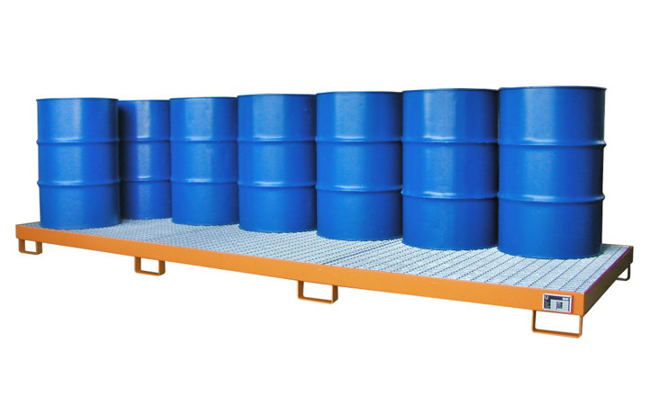 - Tank konteynerleri, varil ve küçük kapların depolanması için galvanizli ızgara ile