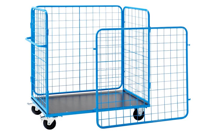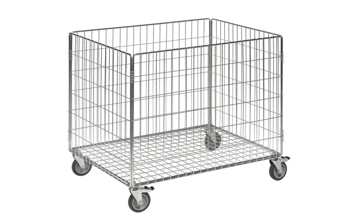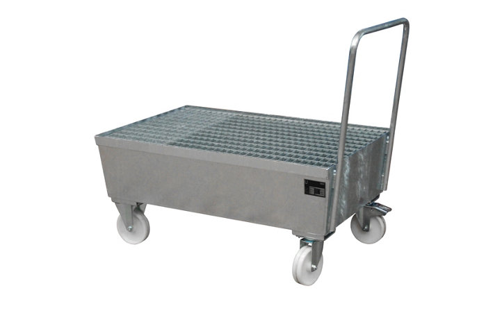 Konik yapıda, iki taraflı kenar profilli destek ızgara.3 mm'lik çelik saçlı toplama küvetleri, itme kollu. Çıkarılabilir, galvanizli ızgara. 2'şer döner ve sabit tekerlek. Frenli bir döner tekerlek. Tekerlek Ø 150-200 mm.