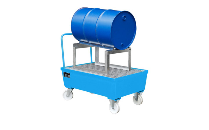 60 litrelik varillerin ve küçük kapların çıkıntı yapan GRP toplama küveti üzerinde yönetmeliklere uygun, yerden tasarruf sağlayan depolama ve doldurma
