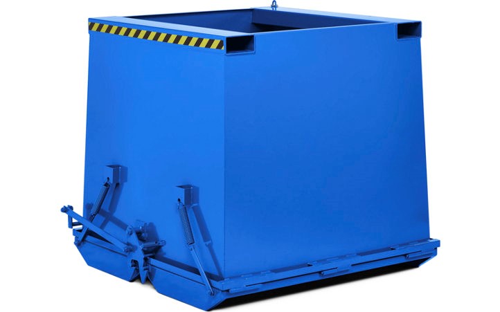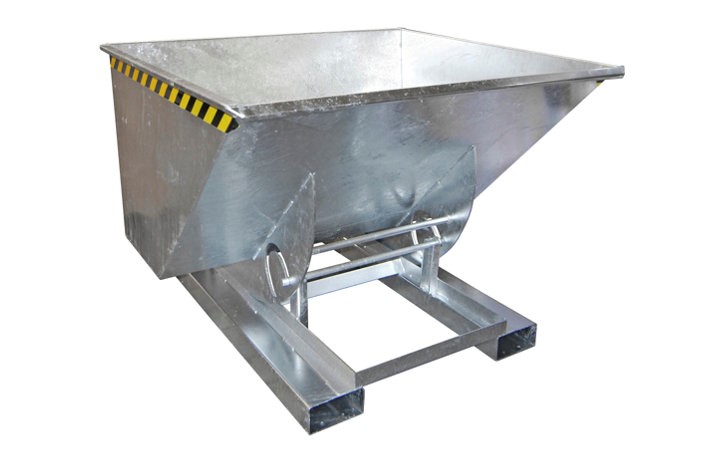 Bu ağır hizmet tipi menteşeli alt atlama, malzeme ve atık kabı olarak çok yönlü kullanım için uygundur. Özel çan şekli, boşaltılırken malzemenin tıkanmasını önler. Mekanizma, sürücü koltuğundan bir kablo çekme kullanılarak açılır. Kap indirildiğinde kapak otomatik olarak kapanır. 3 mm çelik sac.