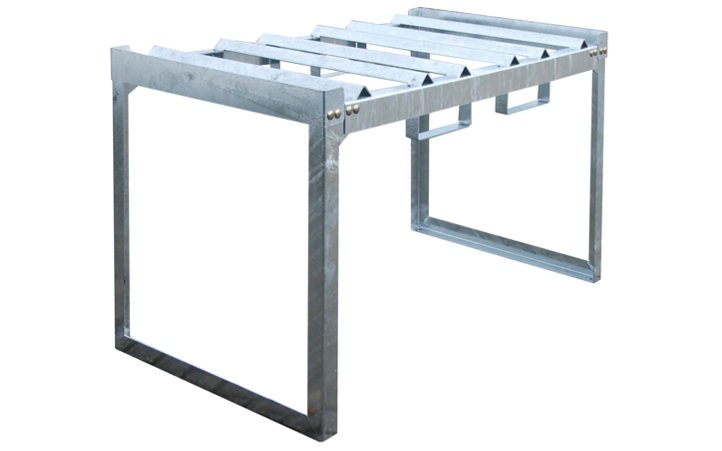 Sağlam, sıcak galvanizli konstrüksiyon. Çatal girişleri, taşıma kapasitesi 500 kg. Maks. 2 yerleştirme düzlemi istiflenebilir.